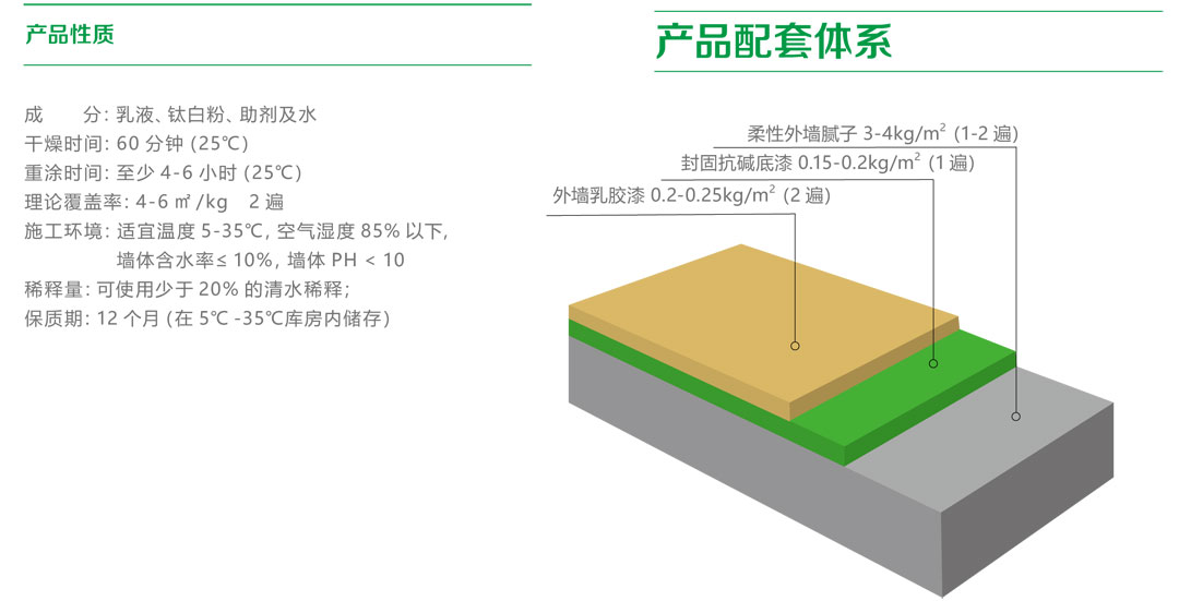外墻乳膠漆是丙烯酸聚合物外墻涂料,適用于防止和彌補混凝土、水泥、磚石建筑等各種外墻面產生的細微裂紋,是建筑工程外墻裝飾使用的傳統涂料,適用于新舊外墻墻面。